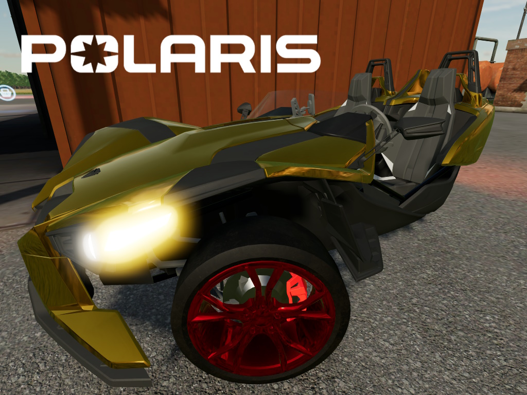 Мод "Polariss Slingshot 2015 v1.0" для Farming Simulator 22 - Макс. мощность - 173 лс. Макс. скорость - 180 км/ч. Светотехника, выбор цвета и номера, следы, пыль, анимация рычага КПП. Моется. Тест на версии 1.14. Предоставил Benzin666.