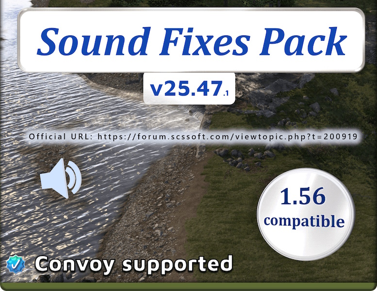 Мод "Sound Fixes Pack v25.47.1" для American Truck Simulator - Улучшенные звуки тягача, полуприцепа, трафика, окружающей среды. Тест на версии 1.56.1.7s. Предоставил Benzin666.